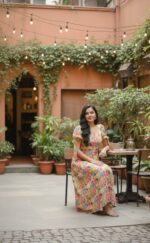 The sweetheart neckline adds a feminine silhouette, while the puff sleeves with tie-up detailing bring a playful, romantic flair. Its relaxed A-line fall ensures easy movement and a flattering drape on all body types. Pair it with minimal jewellery and a wicker sling bag for a chic daytime outing or café brunch.