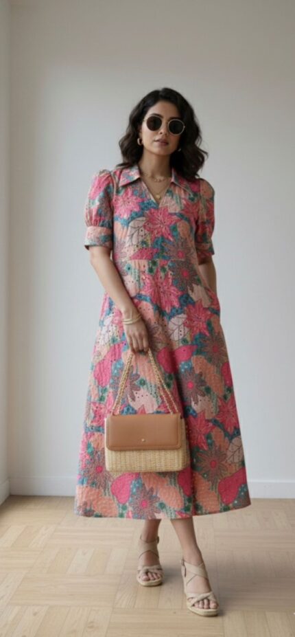 * Intricate Print : Features vibrant, multi-floral embroidery on the yoke and a matching border along the hem, adding a pop of color and artistic detail.