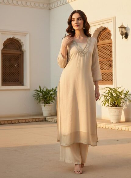 Embrace effortless elegance with this charming Cream A-Line Kurti, designed to bring a touch of nature-inspired beauty to your everyday wardrobe. Crafted from breathable, soft-touch fabric, this piece is the perfect blend of comfort and traditional craftsmanship.
