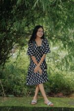 Make a breezy and stylish statement with this indigo wrap dress, beautifully adorned with traditional handblock leaf motifs. Crafted in soft, breathable cotton, this dress is designed for all-day comfort and effortless charm. Whether you’re heading out for brunch, a casual day out, or a weekend getaway, this dress is your perfect companion.