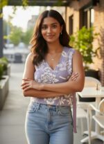 * Versatile Cropped Length: Pairs beautifully with high-waisted denim, like the jeans shown, or a flowy skirt.